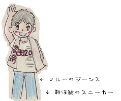 ツアーTにブルージーンズに紺のスニーカーで登場。百万ドルの笑顔(古っ)で爽やかに登場。